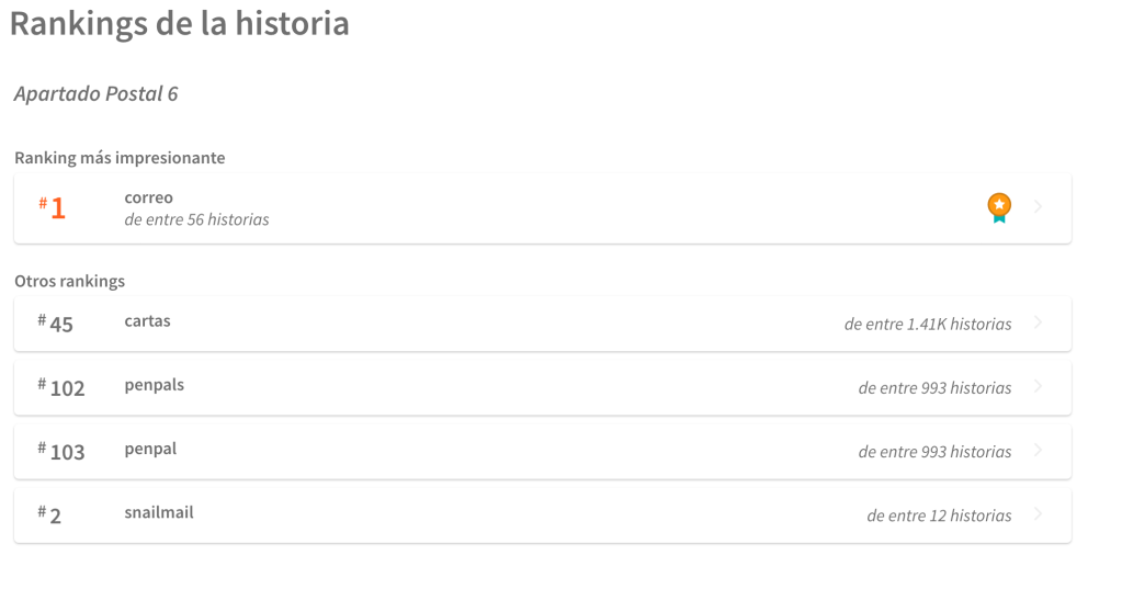 Pero hoy vuelvo. Y vuelvo por la puerta grande. Me vengo enterando que una de mis historias es #1 en la categoría ‘correo’. Ya sé que se oye muy equis, pero hey: ¡soy #1 en algo!