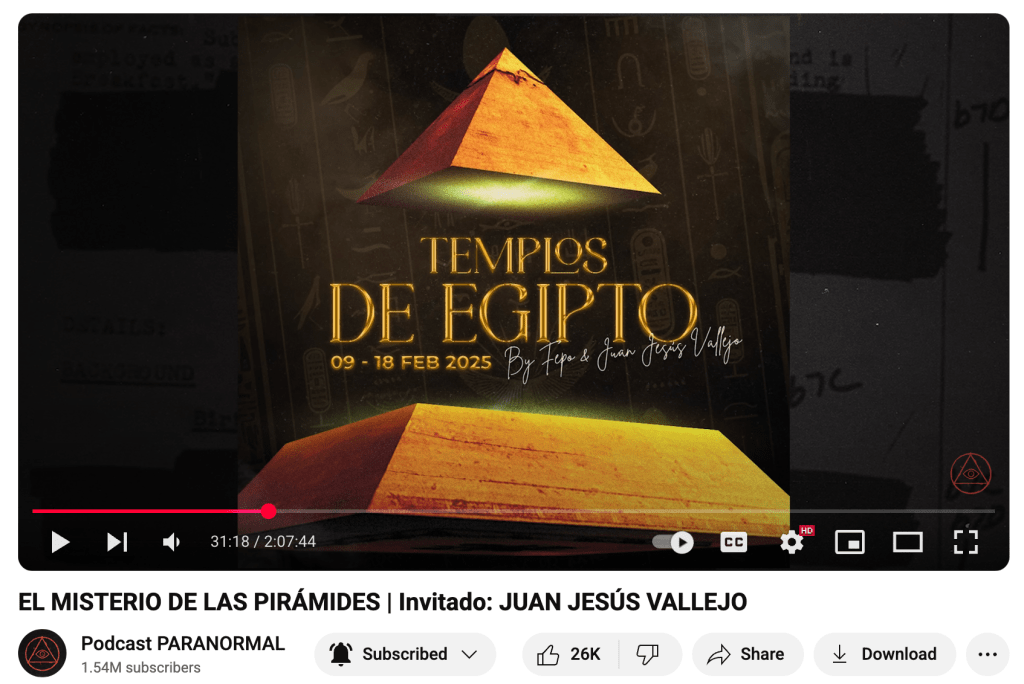 - Agosto 2024. Anuncio del viaje a Egipto. Pasó el tiempo, el año 2024 yo me decidí a pasar el verano fuera de México, para huir de las lluvias. LOL: me llevé El Chasco de mi Vida 😆 , pero esa es otra historia. En Agosto yo estaba en Estambul muriendo de calor, cuando un martes salió un nuevo capítulo en Podcast Paranormal, esta vez con Juanje Vallejo. En ese capítulo anunciaron el viaje organizado entre Juanje y Fepo para ir a Egipto. No lo pensé dos veces y pedí informes. Al siguiente día estaba haciendo mi primer pago para apartar mi lugar. Las cartas estaban echadas.